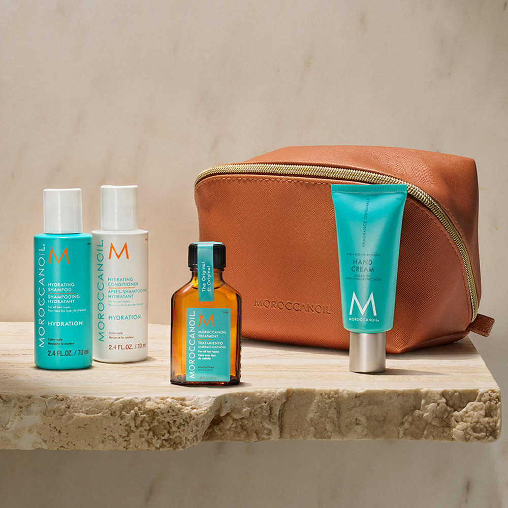Сохраните идеальную прическу, где бы вы не находились, с новыми дорожными наборами Moroccanoil 2024! Каждый набор упакован в фирменную стильную косметичку.