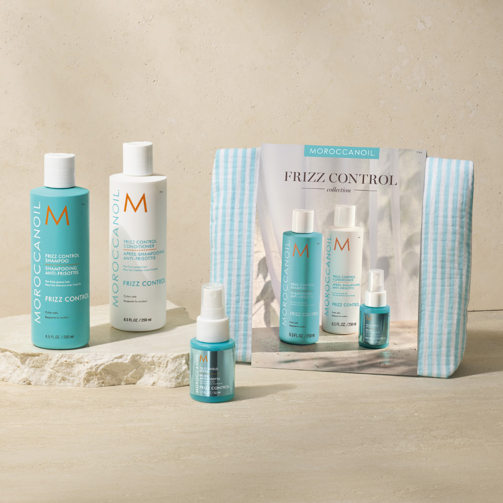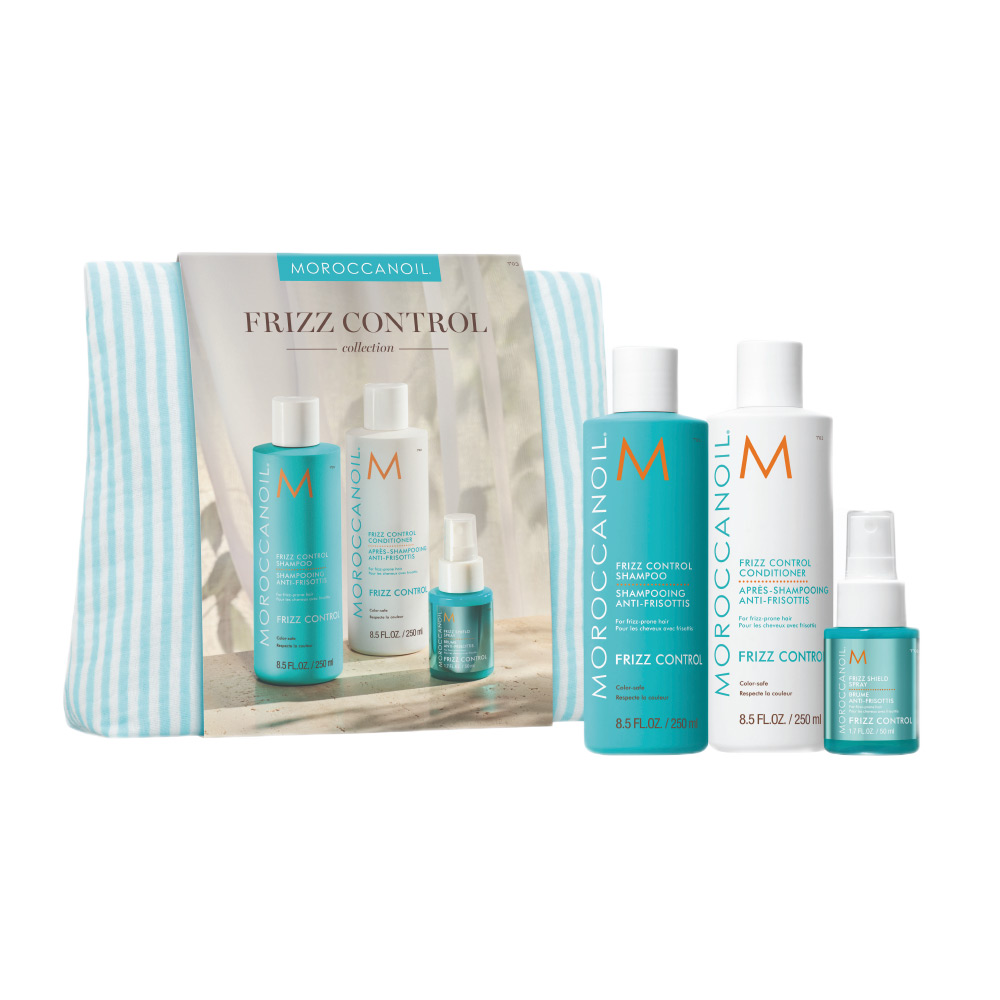 Весенний набор Moroccanoil Frizz Control в полосатой косметичке 2026