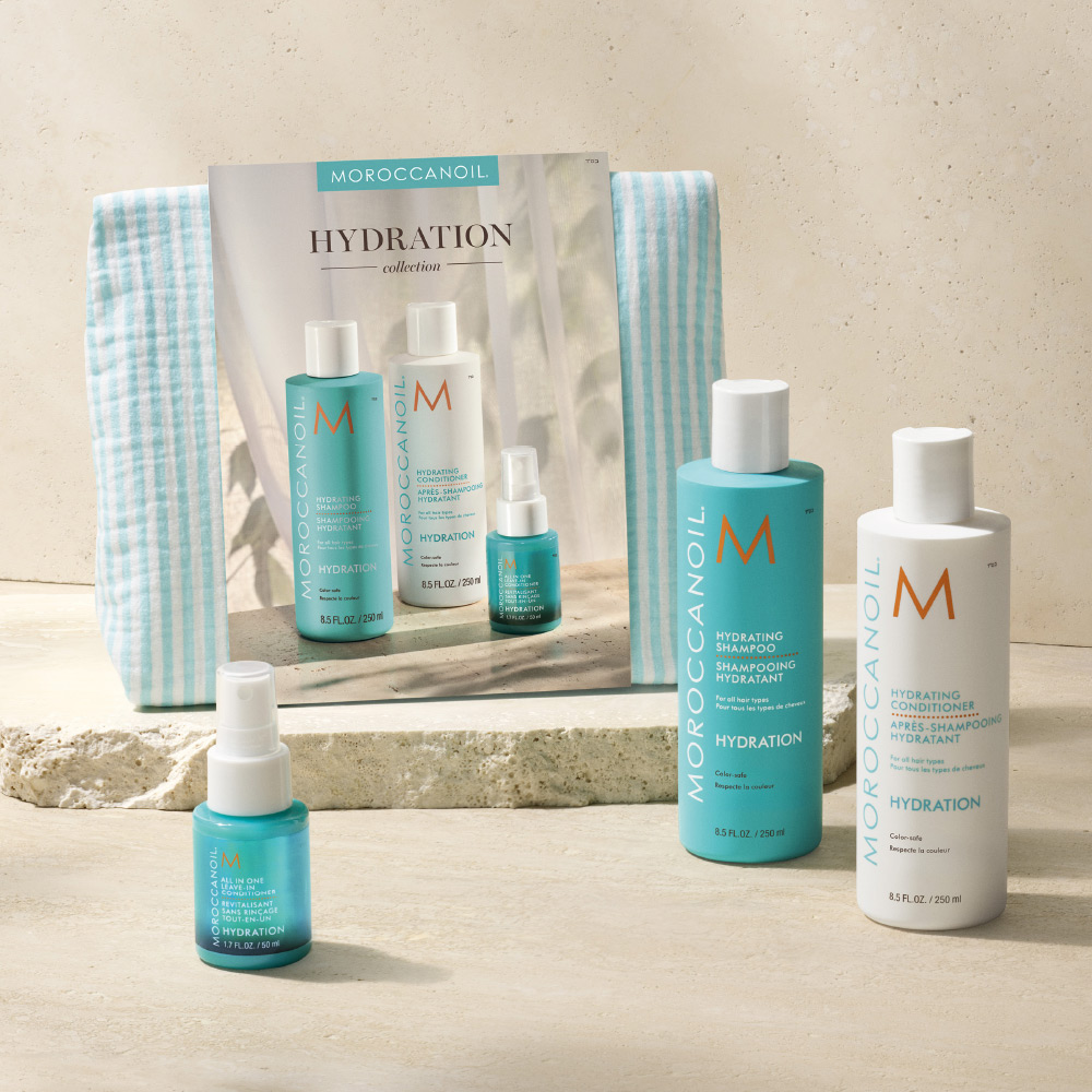 Весенний набор Moroccanoil Hydration в полосатой косметичке 2026
