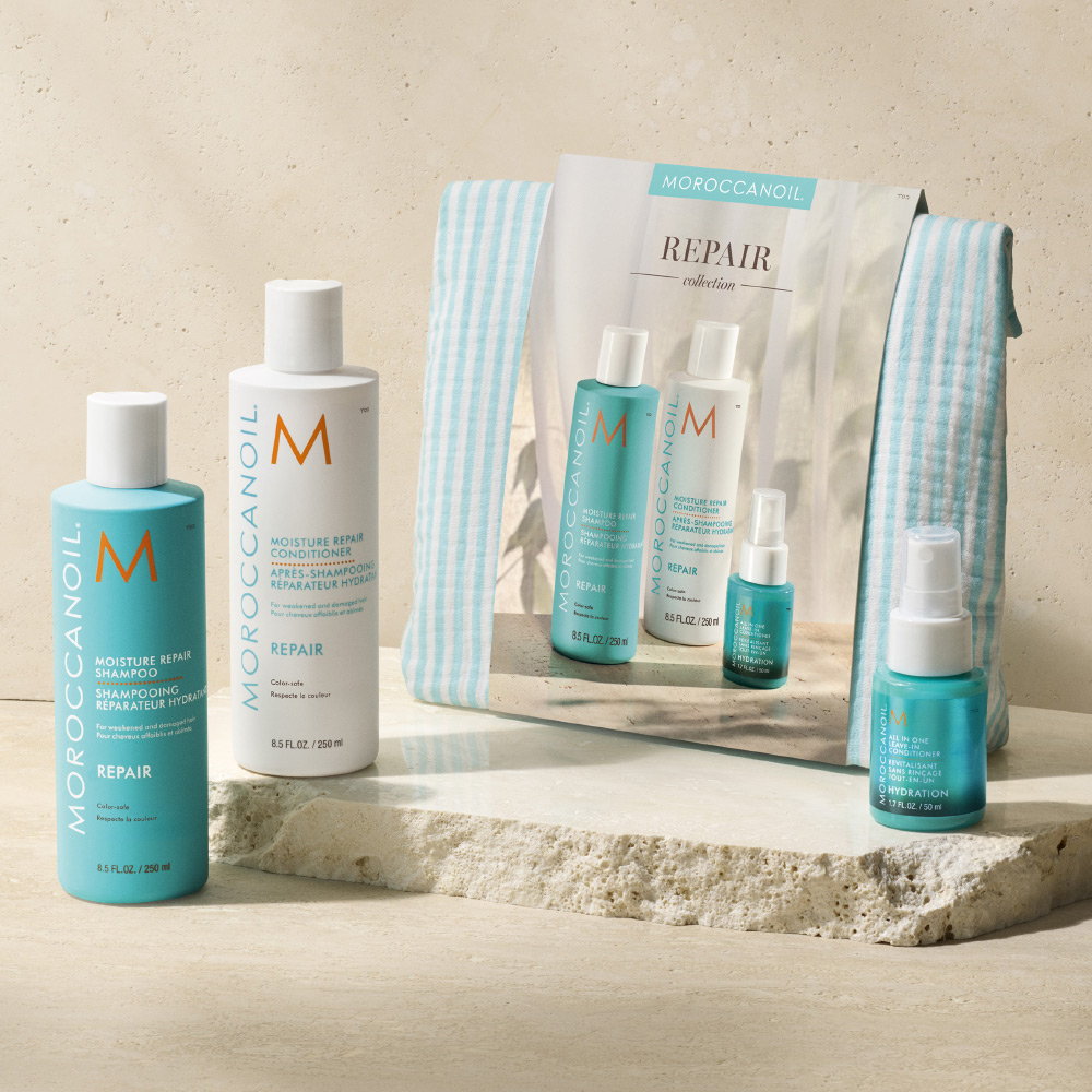Весенний набор Moroccanoil Repair в полосатой косметичке 2026