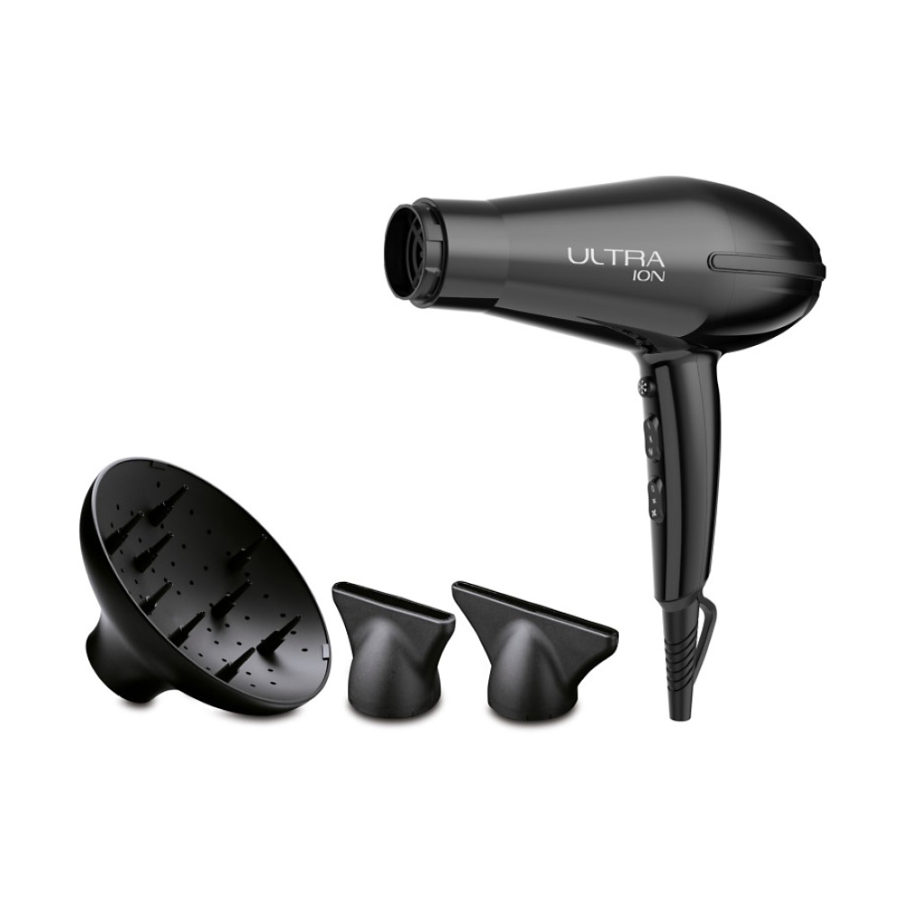 Профессиональный фен Ultra Ion оснащен чрезвычайно надежным и долговечным АС-мотором. Благодаря технологии Ion Plus этот фен является отличным помощником для восстановления молекулярной структуры волос: он восстанавливает природную влажность волос, увеличивает блеск и эластичность, гарантирует идеальную стойкую прическу без электризации. Благодаря высокой нагревательной способности турмалин обеспечивает быстрое идеальное высыхание, предотвращая чрезмерное воздействие тепла. В комплект входят следующие профессиональные аксессуары: 2 ультраузких насадки-концентратора воздушного потока (4 мм и 8 мм) и диффузор. Идеально подходит для ежедневного использования.